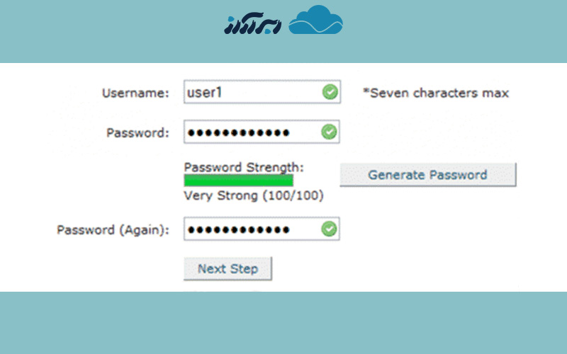در این مرحله از کار، باید برای دسترسی به دیتابیس سایت خود یک کاربر یا همان user تعریف کنید. بدین منظور در صفحهای مطابق شکل زیر نام کاربری و رمز عبور برای کاربر خود تعیین کرده و گزینه Next Step را انتخاب کنید.