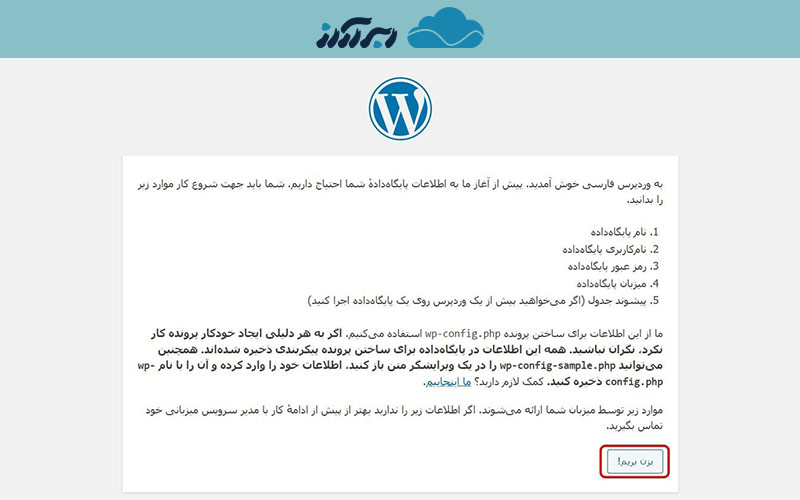در گام بعدی آموزش نصب wordpress در cpanel به صفحهی مطابق تصویر زیر منتقل میشوید. در این مرحله نیازی به تنظیمات خاصی نیست و تنها کافیست که برروی کلید “lets go” کلیک کنید. البته اگر در حال نصب وردپرس فارسی روی cpanel هستید باید روی گزینهی “بزن بریم” کلیک کنید.