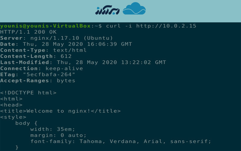 همچنین میتوانید نصب NGINX را از طریق رابط خط فرمان با اجرای دستور ترمینال زیر تست کنید: